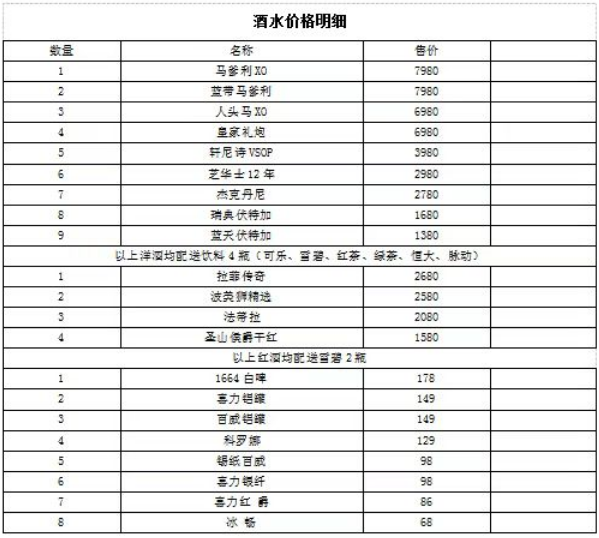 大房区800元冰纯畅饮不限人数。