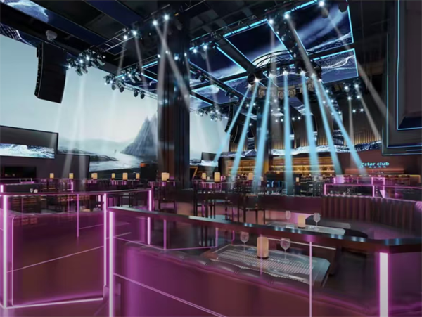 步入凤舞九天,仿佛踏入一场流动的东方梦境。整体空间融合了岭南建筑元素与未来主义视觉语言:朱红雕花隔断与镜面不锈钢交相辉映,灯笼造型的LED灯阵悬浮空中,随音乐节奏变幻色彩。中央舞池上方悬挂着巨型凤凰装置艺术,每一次振翅都配合灯光秀完成惊艳演绎。包厢区域则采用私密性极强的围合设计,既保留中式庭院的含蓄美感,又配备顶级音响系统与智能灯光控制,满足不同聚会场景的需求。这里不仅是听觉的盛宴,更是视觉的艺术展。