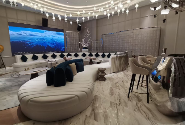 WONE顶奢KTV的外观设计简洁大气,建筑风格充满现代感。一进入大堂,宽敞明亮的接待区让人感受到舒适与尊贵。整个空间以黑色、白色和金色为主色调,搭配上精致的装饰品和柔和的灯光,营造出浓厚的奢华氛围。